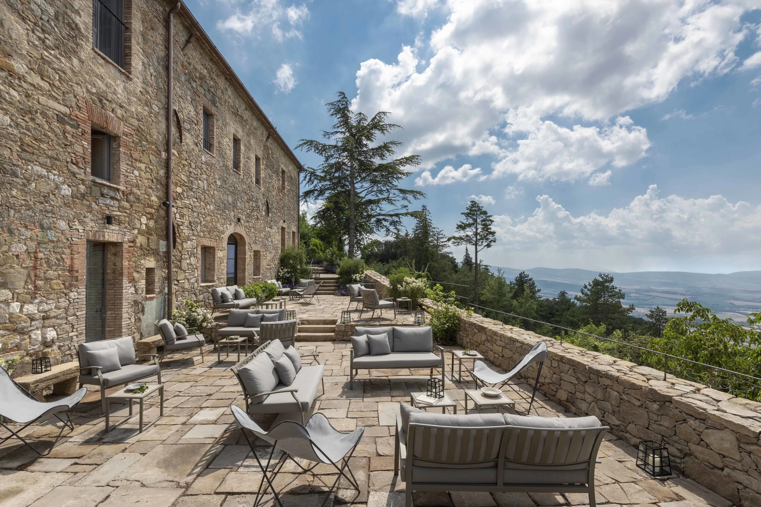 Occasionally the interiors of a hotel are so beautifully put together that our spirits soar from the choice and depth of colours, textures & fabrics. And we know that our clients will delight in their surroundings. This is definitely the case at this 18-room Tuscan retreat where old stone walls meet wonderfully-vivid splashes of colour and contemporary furnishings compliment the original features & architecture.
